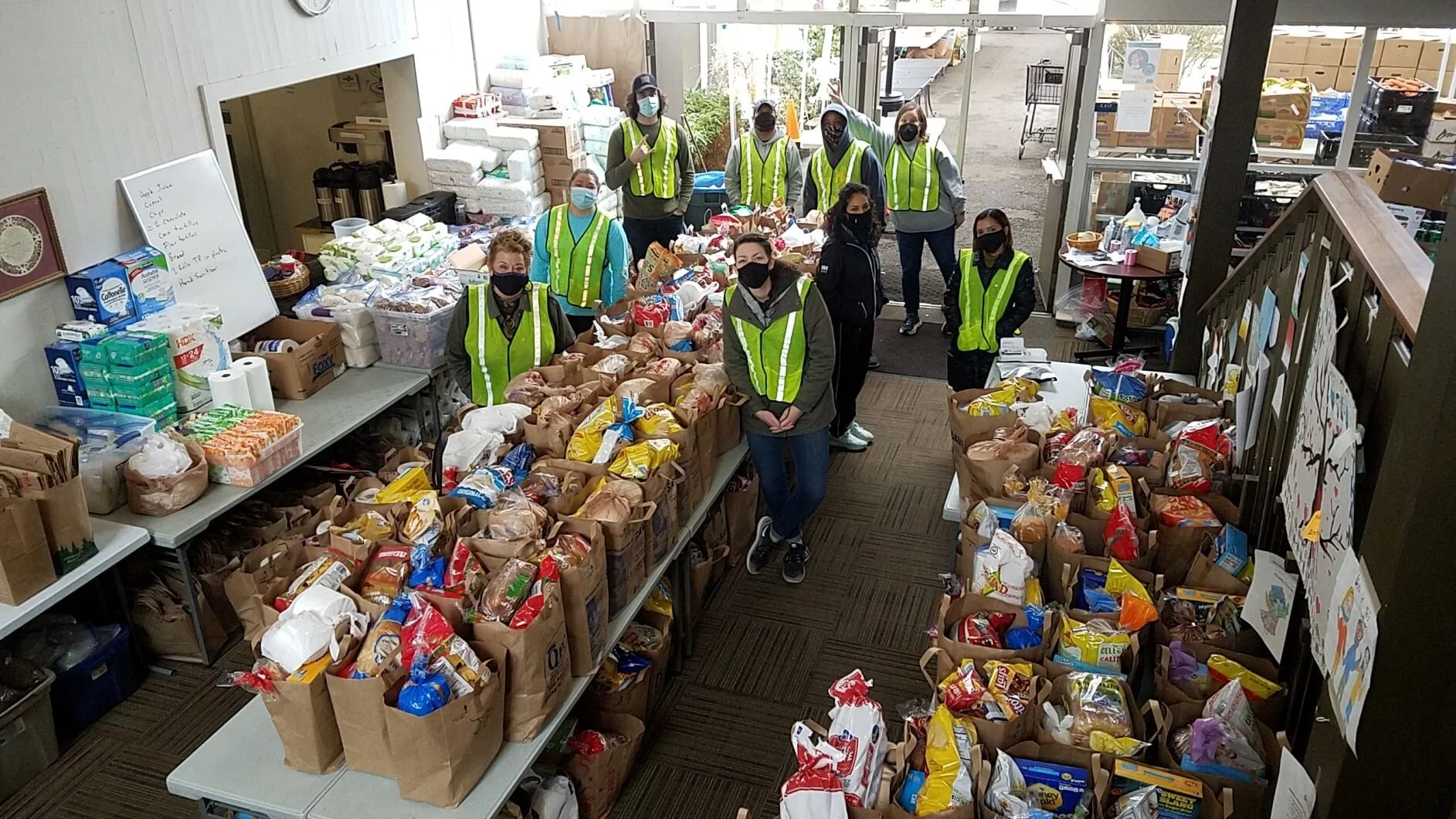 Groceries today were provided by Lighthouse, Victory Court, Bellevue Presbyterian, Doxa, First United Methodist, Highland Covenant, Crossroads Bible, 24-Seven, Sacred Heart Parish & School, and Overlake Park Presbyterian churches, as well as Rotary Bellevue Sunrise, Champions Foundation and the Jubilee Friends group. A total of 194 orders came in today and all went out to families today, along with 23 carried over from yesterday. Thank you to everyone who donated today.